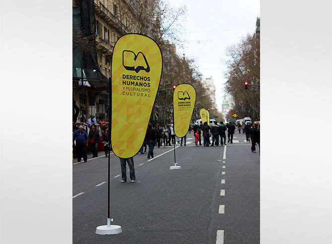 Para este evento, se utilizaron los Skybanners de Armadillos, que se lucieron en la Avenida de Mayo destacando tanto a la Subsecretaría de Derechos Humanos y Pluralismo Cultural como al Gobierno porteño.