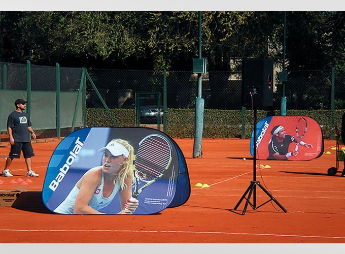 Babolat, la empresa más antigua especializada en deportes de raqueta, está realizando clínicas de tenis a nivel nacional conjuntamente con Martín Jaite, uno de los mejores tenistas argentinos de todos los tiempos. Para dichos eventos, la firma eligió los Skybanners y Banners Plegables de Armadillos para destacar la marca en forma eficaz.
