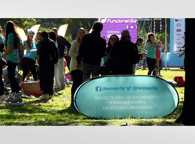En el Roller Village, la zona de servicios, Farmacity dispuso estratégicamente los Groundbanners de Armadillos con distintos hashtags y mensajes alusivos al evento, instando a los participantes a interactuar vía twitter y facebook.