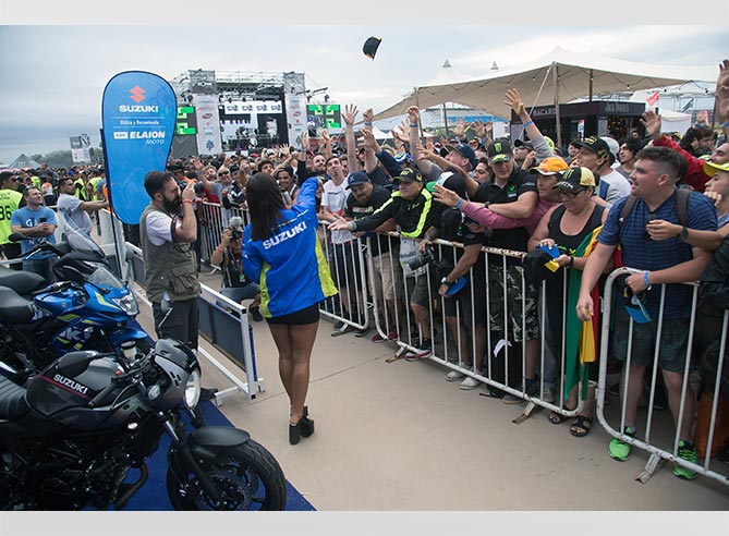 El stand de Suzuki Motos Argentina se llenó de fans que se acercaron a buscar los autógrafos de Álex Rins y Andrea Iannone. Allí se pudo distinguir los Skybanners de Armadillos que se utilizaron para promover la alianza estratégica entre Suzuki e YPF.